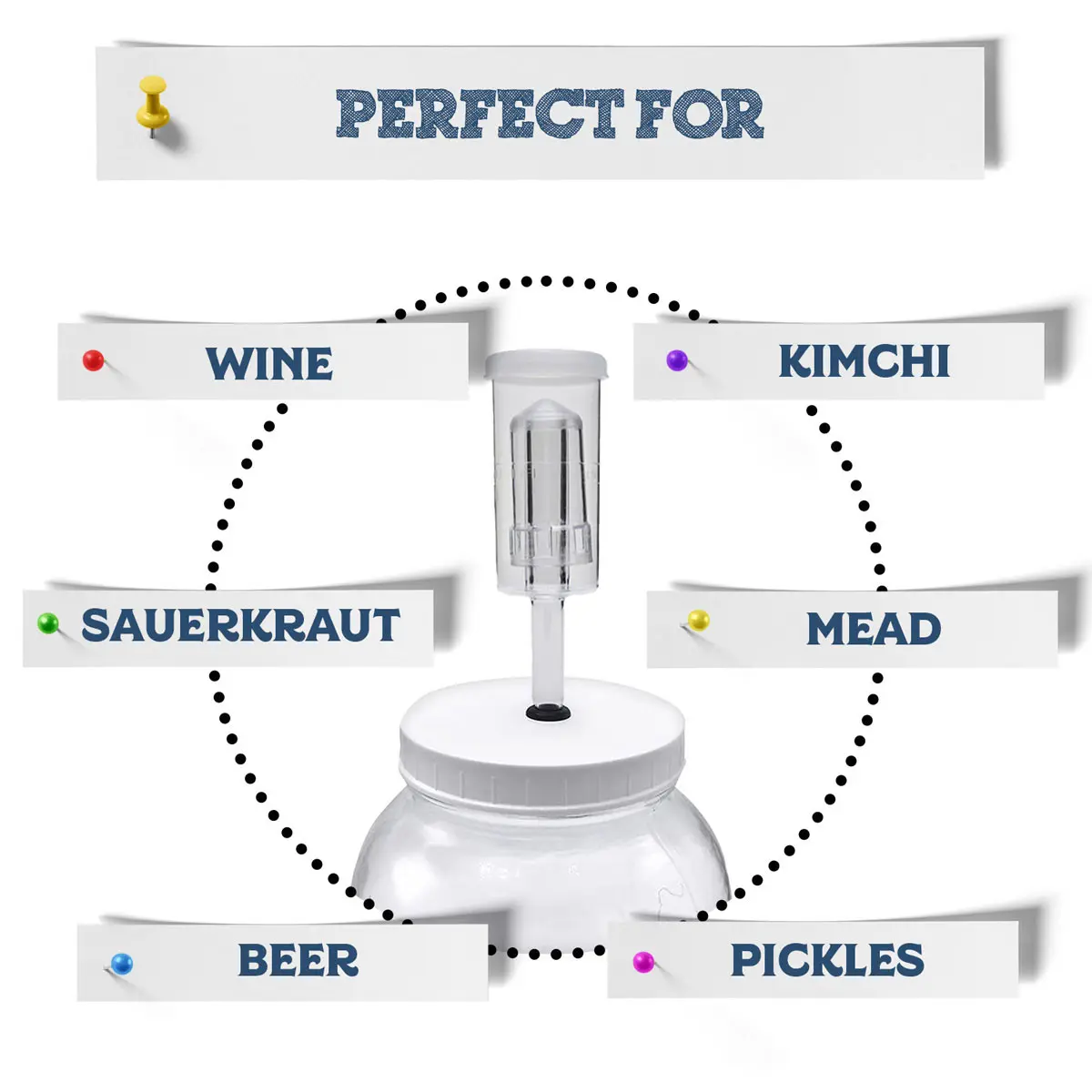 | Gallon Jar | Airtight Gallon Lid with 3 Piece Airlock, Airtight Gallon Lid with S-Shaped Airlock |