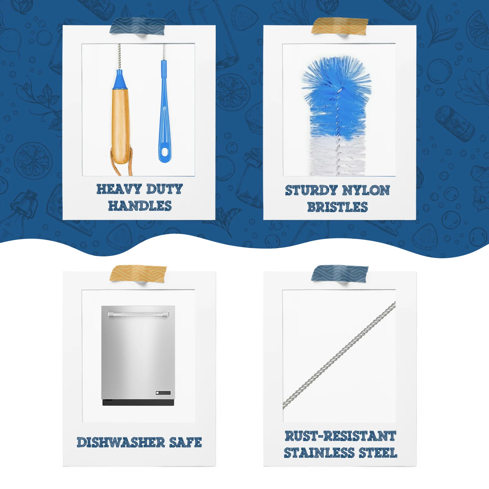 Tackle any cleaning task with this 5-piece brush set. Designed for bottles, straws, and narrow crevices. Stainless steel and nylon bristles ensure every spot is scrubbed clean.