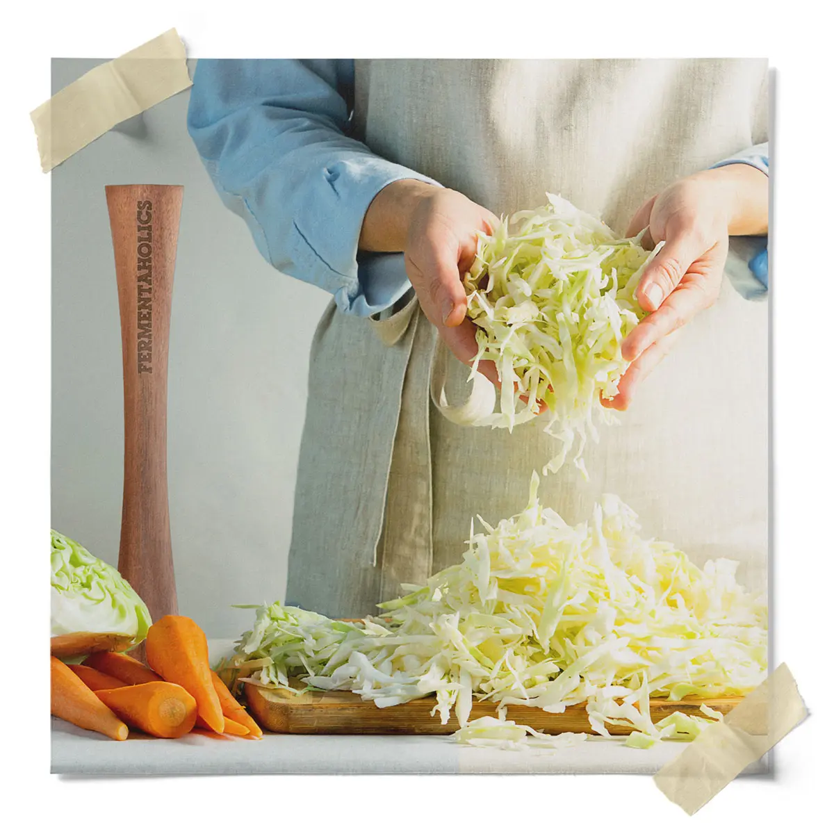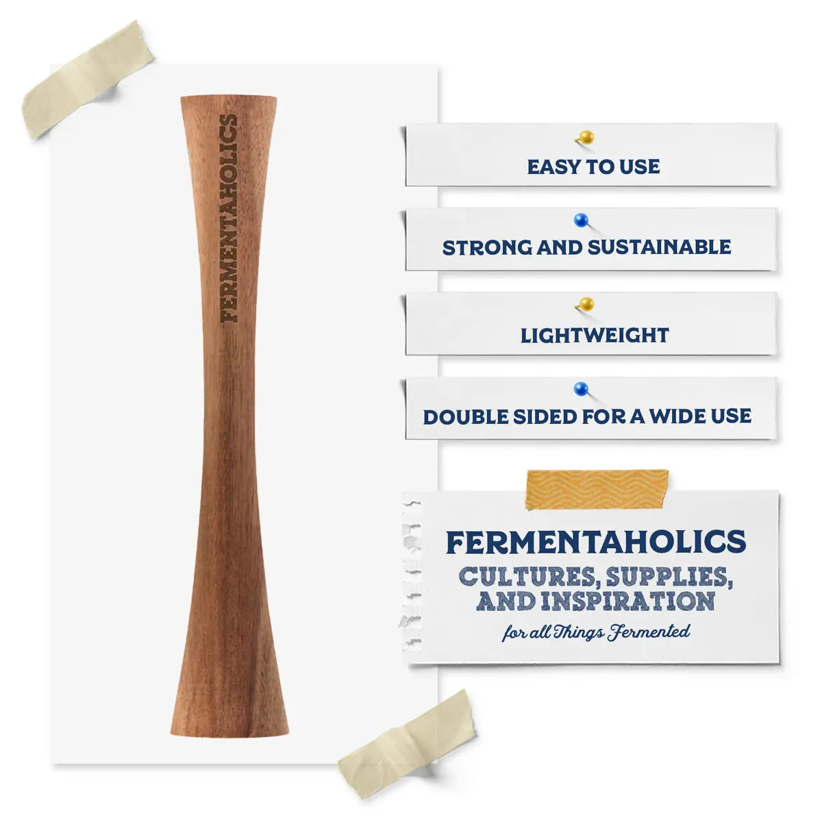 Easily ferment sauerkraut, kimchi, pickles, condiments, and lots of other healthy ferments to share with friends and family. Fermented foods are not only a great source for probiotics, but have many additional health benefits! Pound cabbage in style with this sleek, 13″ Acacia Wood Tamper Tool!