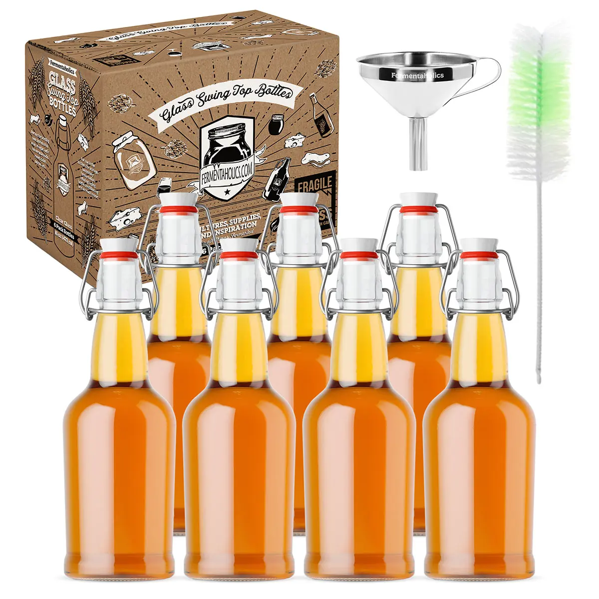 Includes 7 bottles (choice between Stout and Swing Top) with an airtight seal, bottling brush, and funnel! Perfect for bottling, flavoring, and building up carbonation in the secondary fermentation