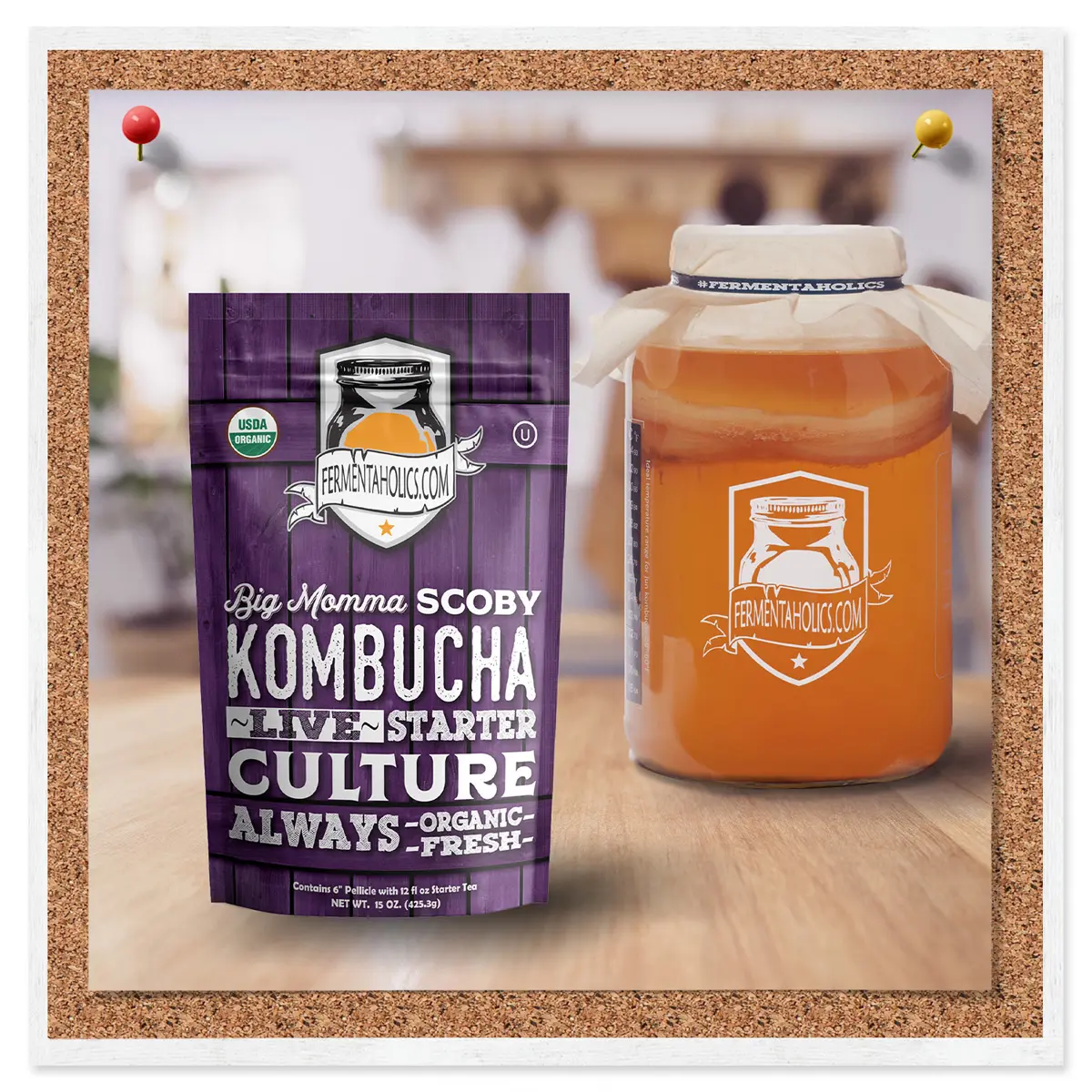 Ever wanted to try brewing your own kombucha? It’s easy! You can brew one gallon of kombucha at home on your first try with Fermentaholics Extra Large Kombucha SCOBY. These SCOBYs have undergone a long fermentation time to ensure the development of beneficial acids in the starter liquid provided!