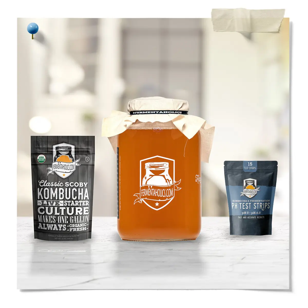When starting the fermentation process, your kombucha should start out at 4.5 pH or lower and can be anywhere between 2.5 and 3.5 pH once completed depending on flavor preference. Testing the pH at the beginning of your brew is always a good idea to keep for safety in keeping unwanted bacteria out of your brew. Aim to start at 4.5 or below.