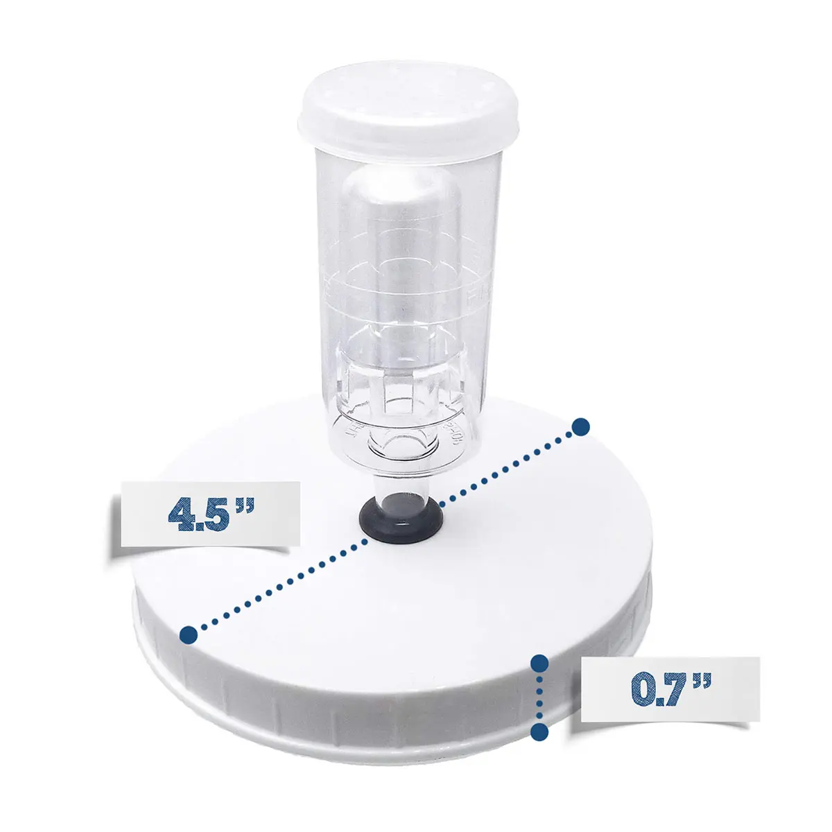 The airtight fermentation lid fits standard one-gallon sized jars and turns your jug into an airtight fermentation vessel. The lid is drilled & grommeted with an airlock and can be used for all standard one-gallon jars.