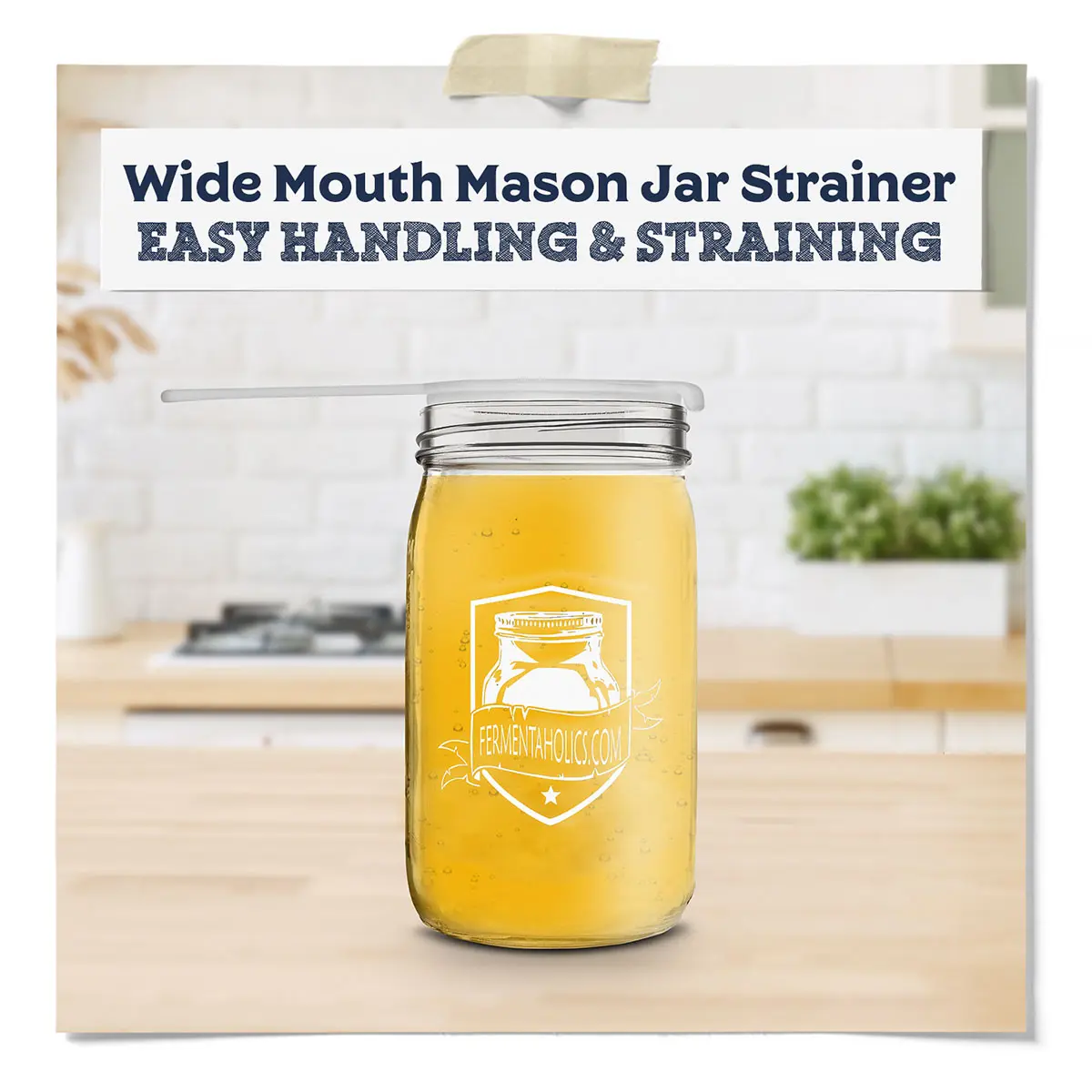 This mesh strainer is perfectly sized to cover the width of your wide-mouth mason jar, ensuring minimal waste of not only your finished water kefir but your water kefir grains as you transfer your liquid and strain off your grains. Less waste equals more water kefir on demand.