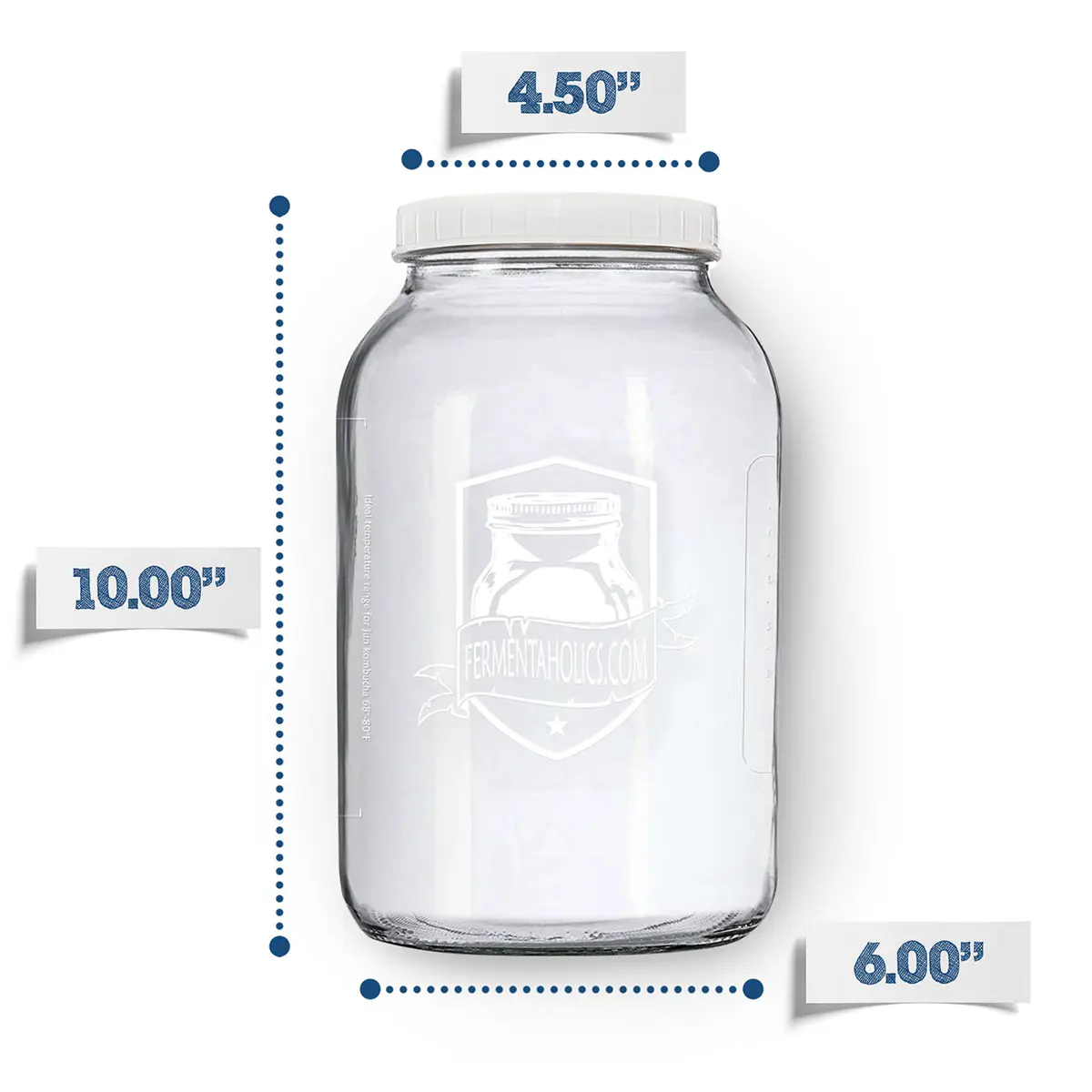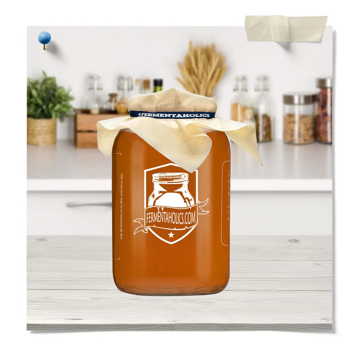 This Printed Gallon Kombucha Glass Jar set includes a muslin cover, rubber band, and adhesive thermometer, perfect for home brewing. Made of American glass, it’s non-porous, easy to clean, and printed with brew notes and ideal temperature ranges. Brew one gallon of kombucha and track your recipes effortlessly for consistent, delicious results.
