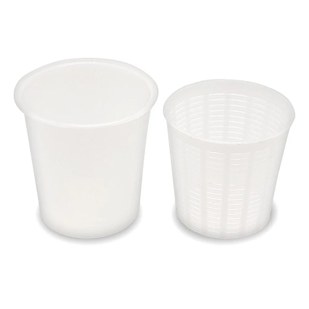 Our ricotta container and basket is high quality and durable and is able to hold up to 1-quart of cheese. The whey catching basket allows gravity to slowly drain without losing any creaminess. Both container and strainer are easy to clean, versatile, and safe to re-use over and over again. Perfect for making fresh ricotta, ricotta Salata, cottage cheese, and much more!