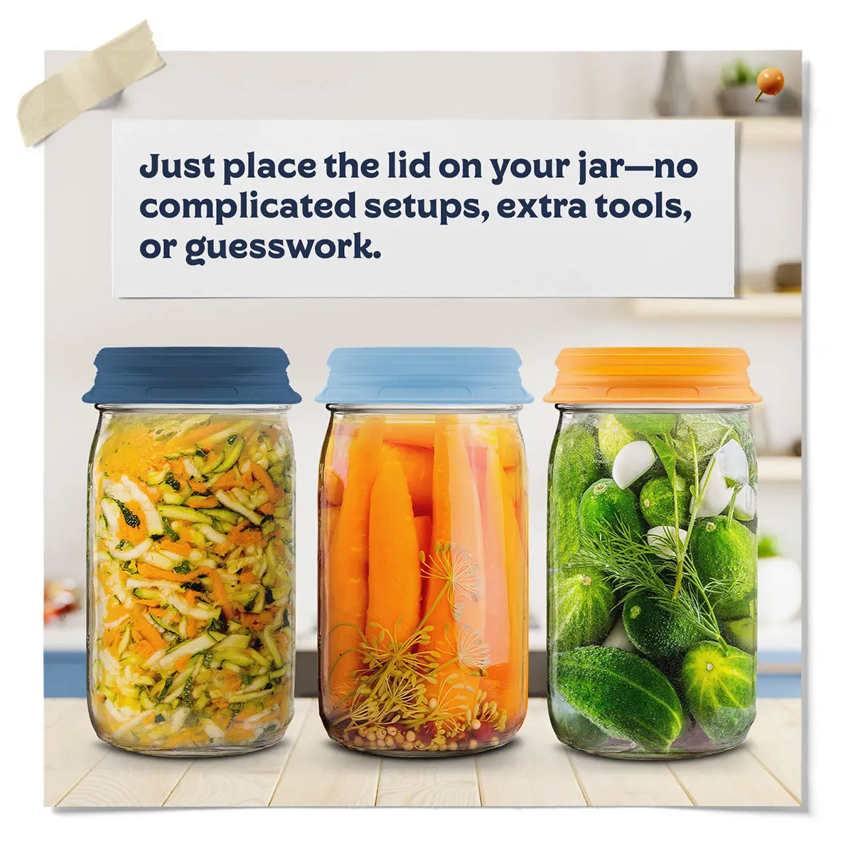 Simple One-Piece Design: Instantly transforms wide-mouth mason jars into fermenters without the need for extra accessories like bands or water airlocks. Perfect for making sauerkraut, kimchi, pickles, vinegar, hot sauce, and other probiotic-rich foods at home.