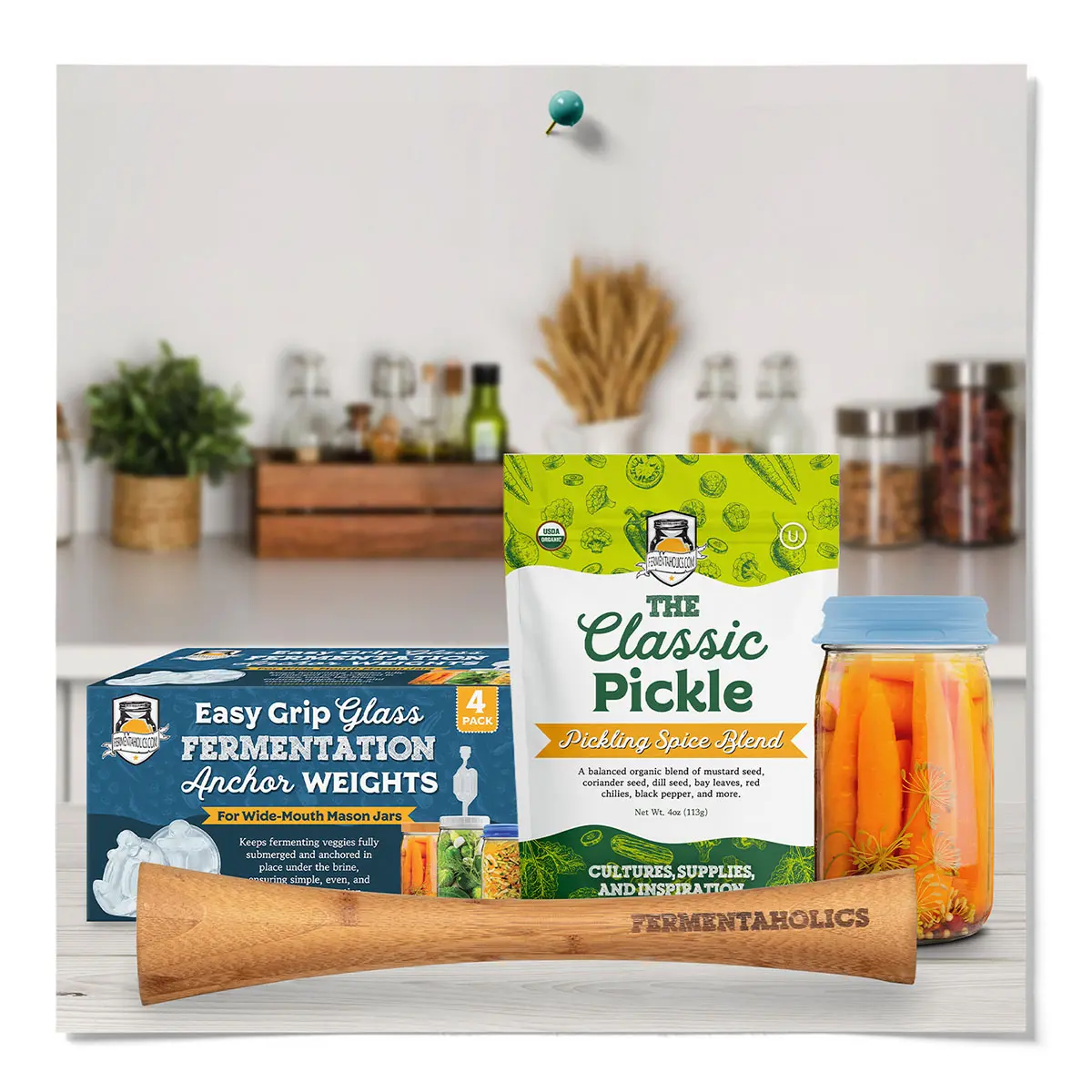 Designed to grip all standard wide-mouth mason jars, these fermentation lids take the guesswork out of “burping” your ferments as the one-way release valve in the middle of the lid releases all the carbon dioxide necessary for your fermentation, turning vegetables, eggs, & more into our favorites.