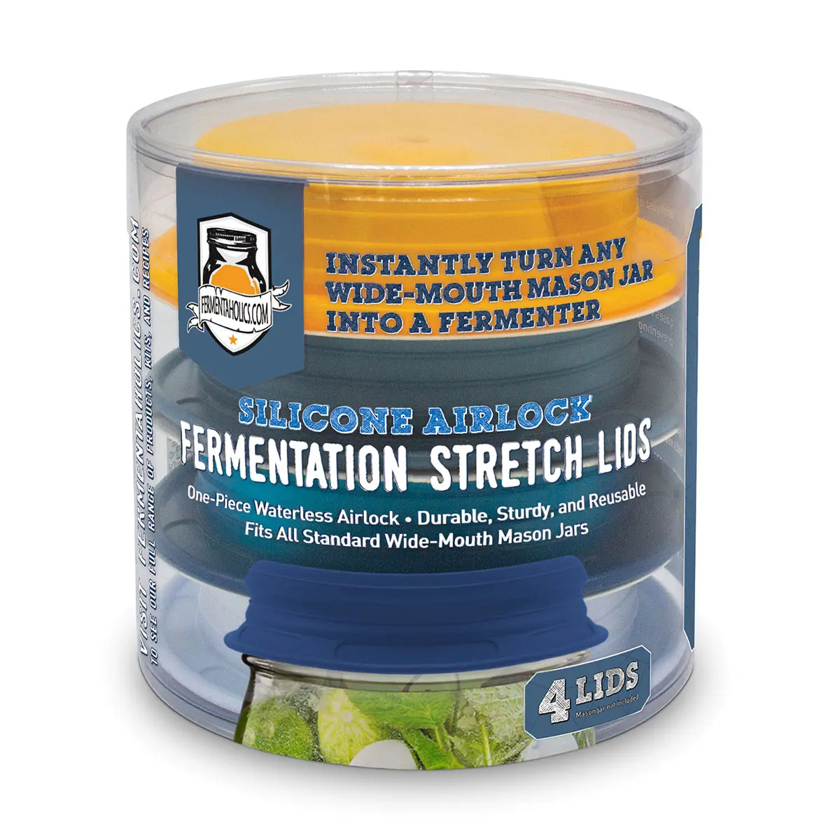 Our silicone airlock fermentation stretch lids are the final answer to your home fermenting needs. With one piece, you can truly “set it and forget it.”