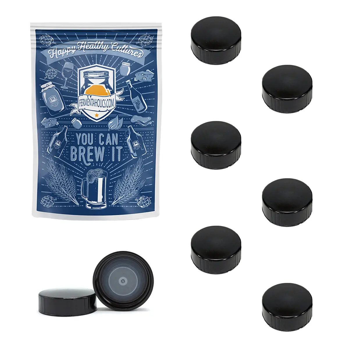 These black plastic caps are made to provide good torque retention and the poly cap will not rust over time. The airtight caps ensure maximum carbonation build-up and flavor development by creating an airtight seal at the opening of your bottle. They are sure to help you brew successfully, whether brewing Kombucha, Kefir, Beer, Kvass, Soda, Cider, Mead, Wine, Infused Oils, Infused Vinegars – you’re only limited by your imagination!