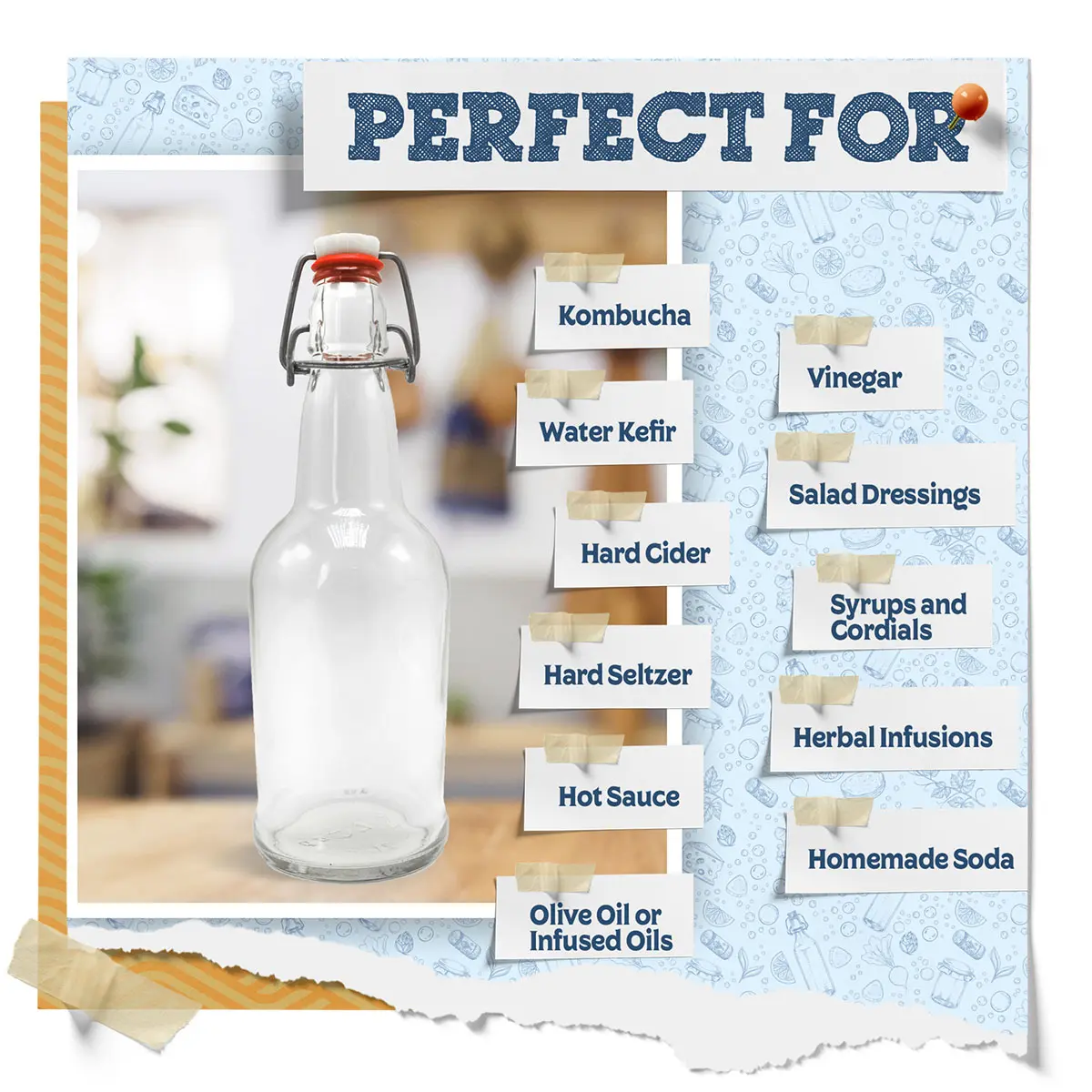 Flip-top bottles provide an air-tight seal for all of your beverage fermenting needs while still allowing you to capture the most carbonation.