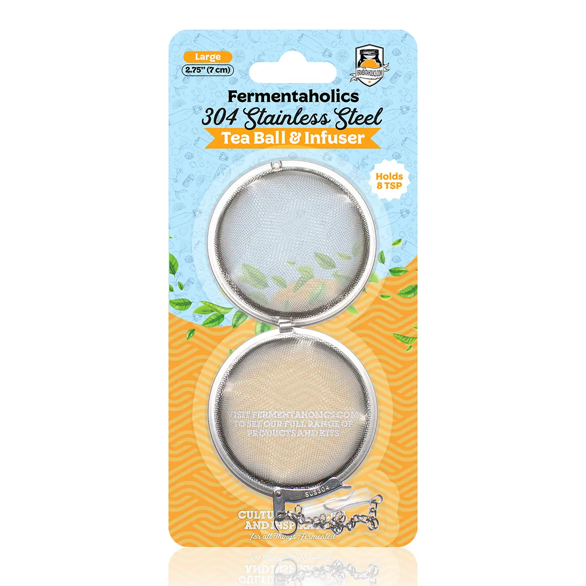 Discover the Fermentaholics’ Large Mesh Tea Ball with Chain, designed for brewing one-gallon batches. This reusable stainless steel tea ball and infuser bring out the rich flavors and aromas of loose-leaf tea for an exceptional taste.